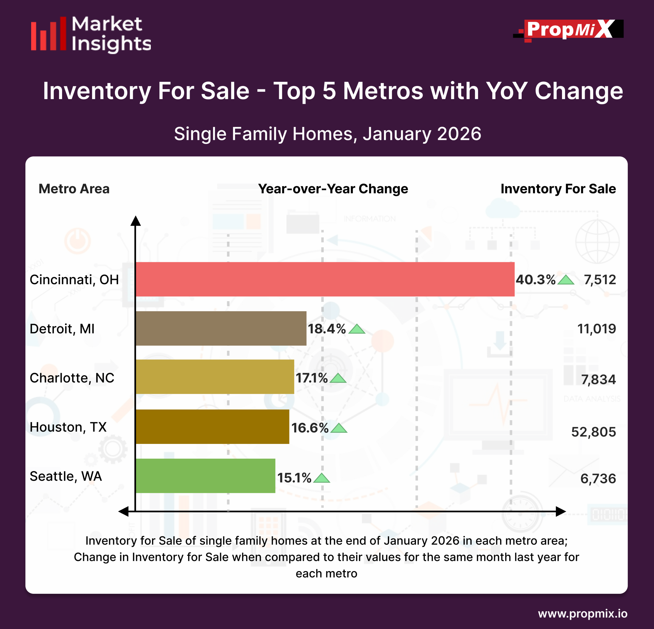 For a detailed view of all 30 metro areas that we track and more insights, visit our Interactive Market Insights page. Learn more about the metrics in PropMix Market Insights.