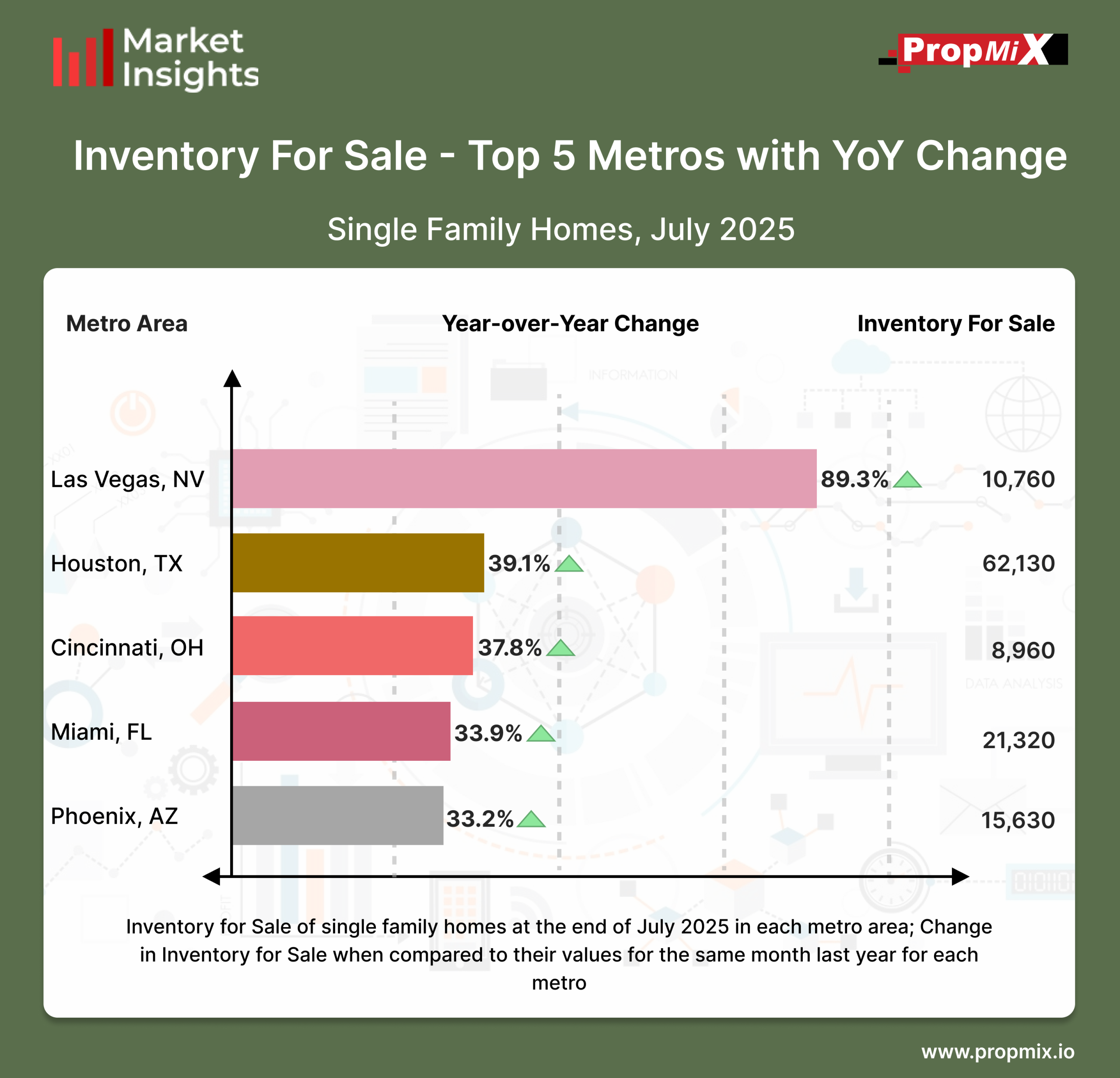 For a detailed view of all 30 metro areas that we track and more insights, visit our Interactive Market Insights page. Learn more about the metrics in PropMix Market Insights.