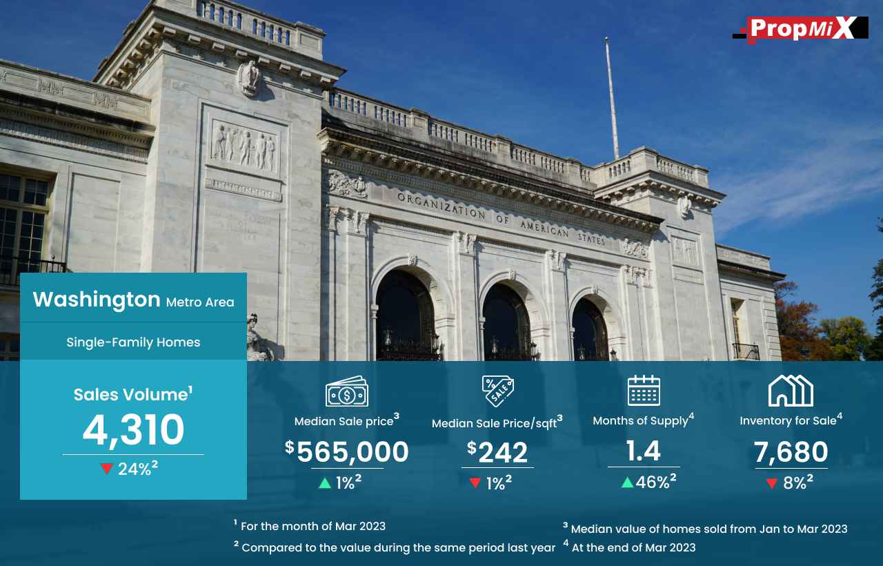 In March of 2023, there was a significant decrease of 24%, in home sales volume in the Washington metro area as only 4,310 homes were sold, compared to the corresponding month in 2022.