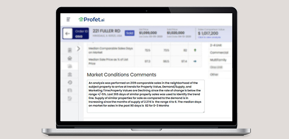 Profet.ai can Autofill Market Conditions Comments in 1004 Market Conditions Addendum