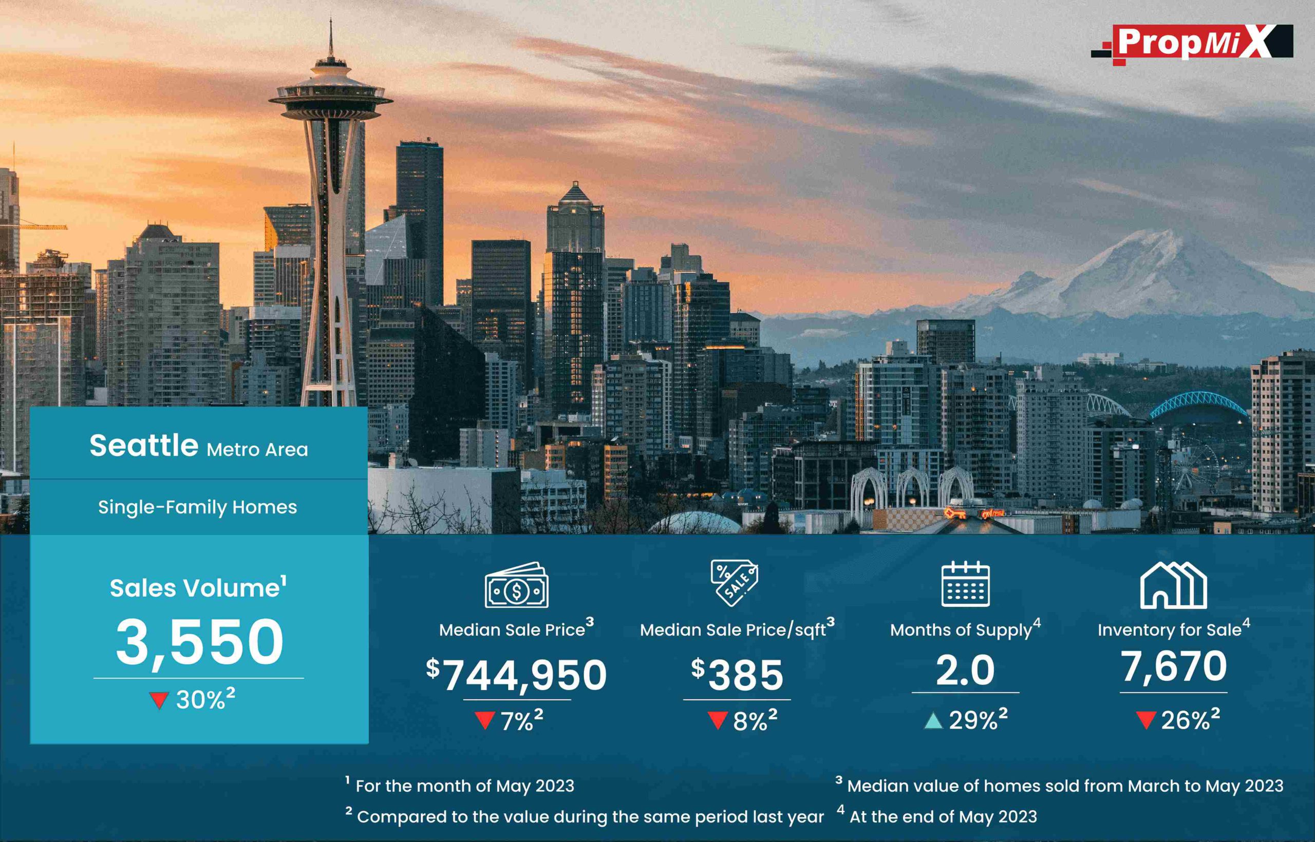 However, the inventory for sale in the Seattle metro area experienced a significant decline of 26% year-over-year. This resulted in a total of 7,670 available properties in May 2023.
