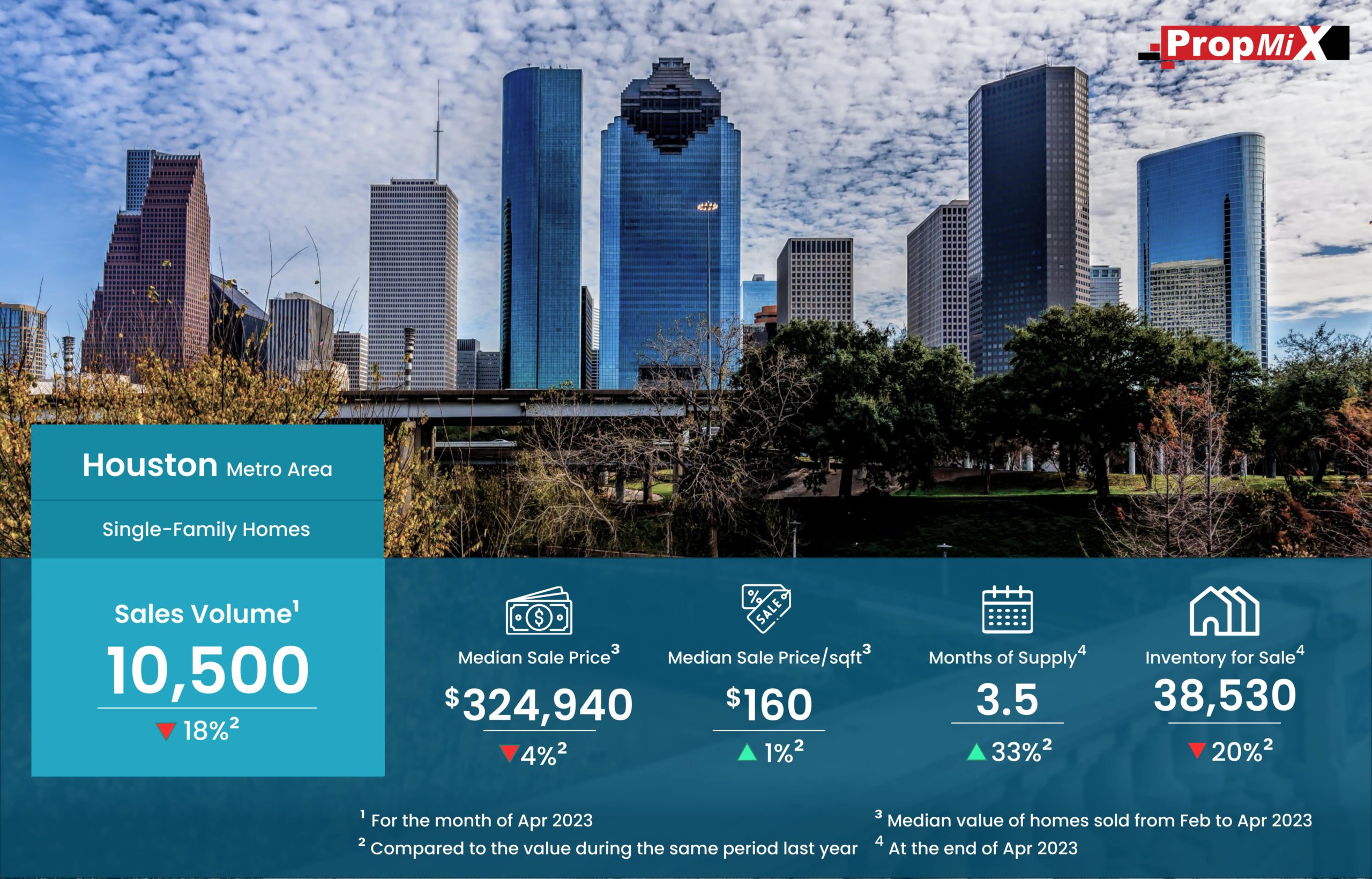 Houston metro region experienced a considerable downswing in single-family home sales during April 2023, with a total of 10,500 properties sold, representing a 18% decrease compared to the corresponding period in the preceding year.