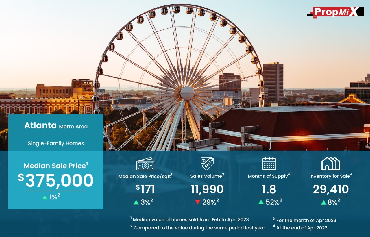 Between February and April 2023, the median sale price in the Atlanta metro area witnessed a rise, highlighting the ongoing growth in the real estate market with a value of 375,000, there was an increase of 1% in the median sale price compared to same period last year.