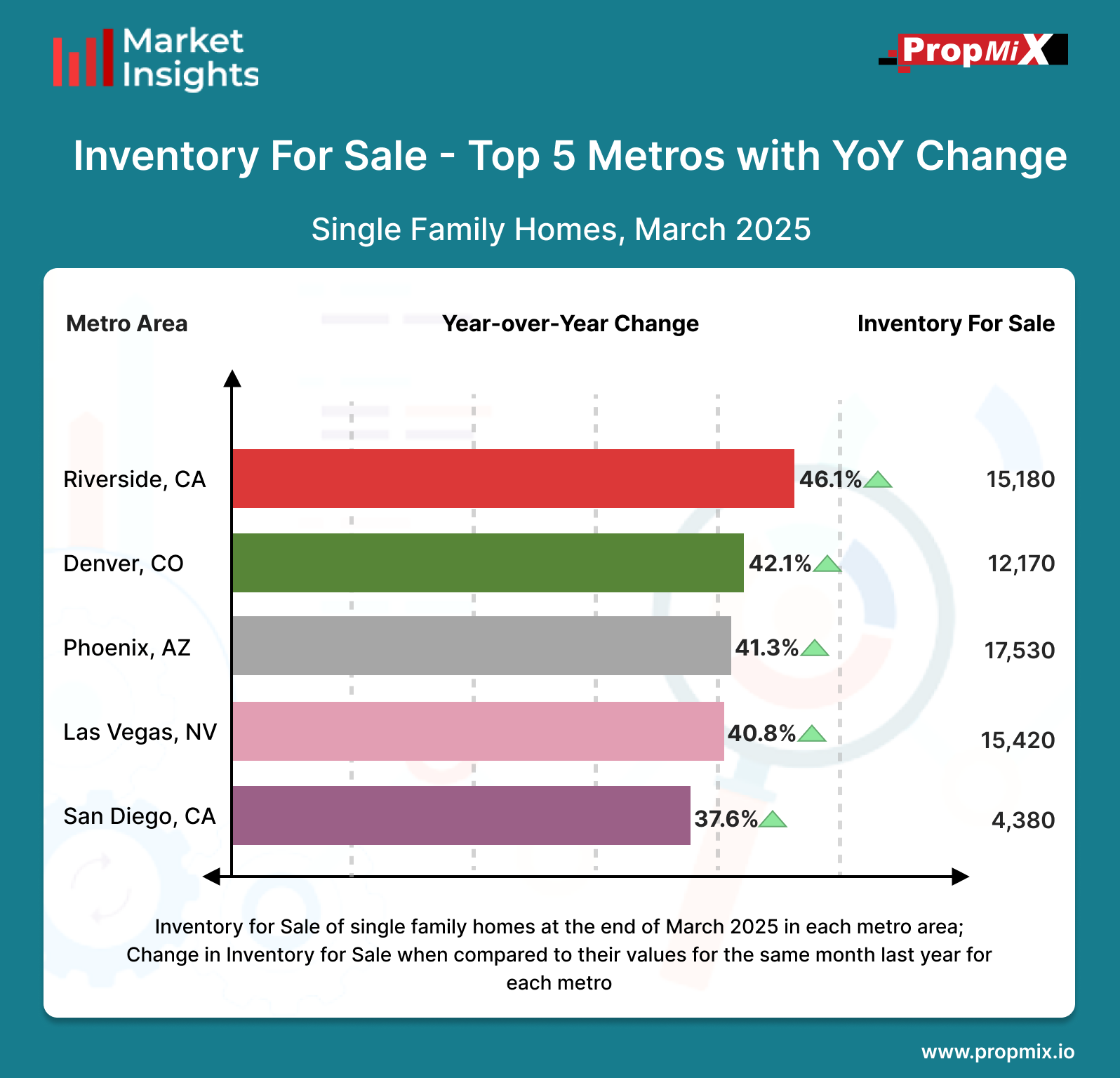 For a detailed view of all 30 metro areas that we track and more insights, visit our Interactive Market Insights page. Learn more about the metrics in PropMix Market Insights.