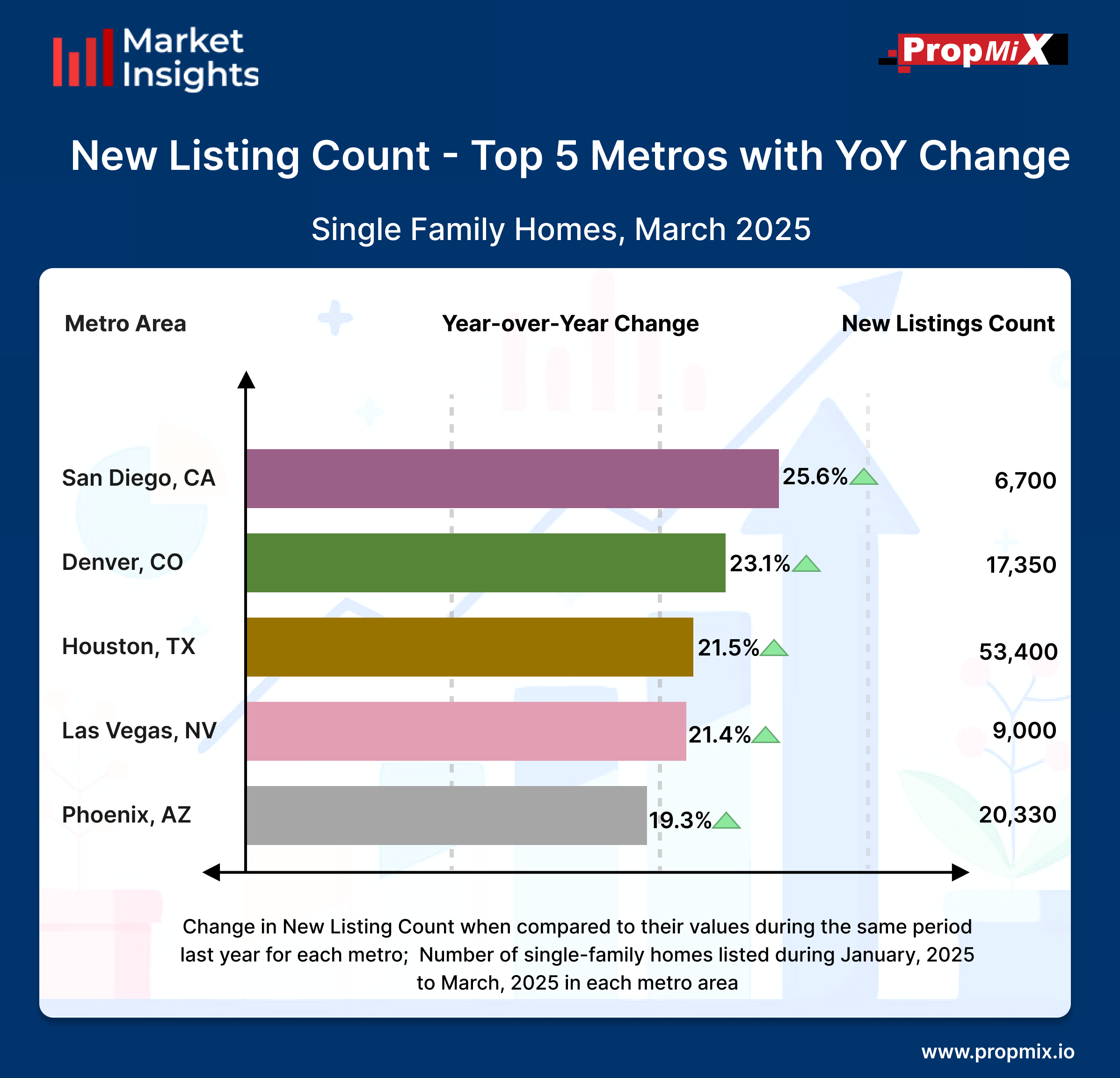 For a detailed view of all 30 metro areas that we track and more insights, visit our Interactive Market Insights page. Learn more about the metrics in PropMix Market Insights.
