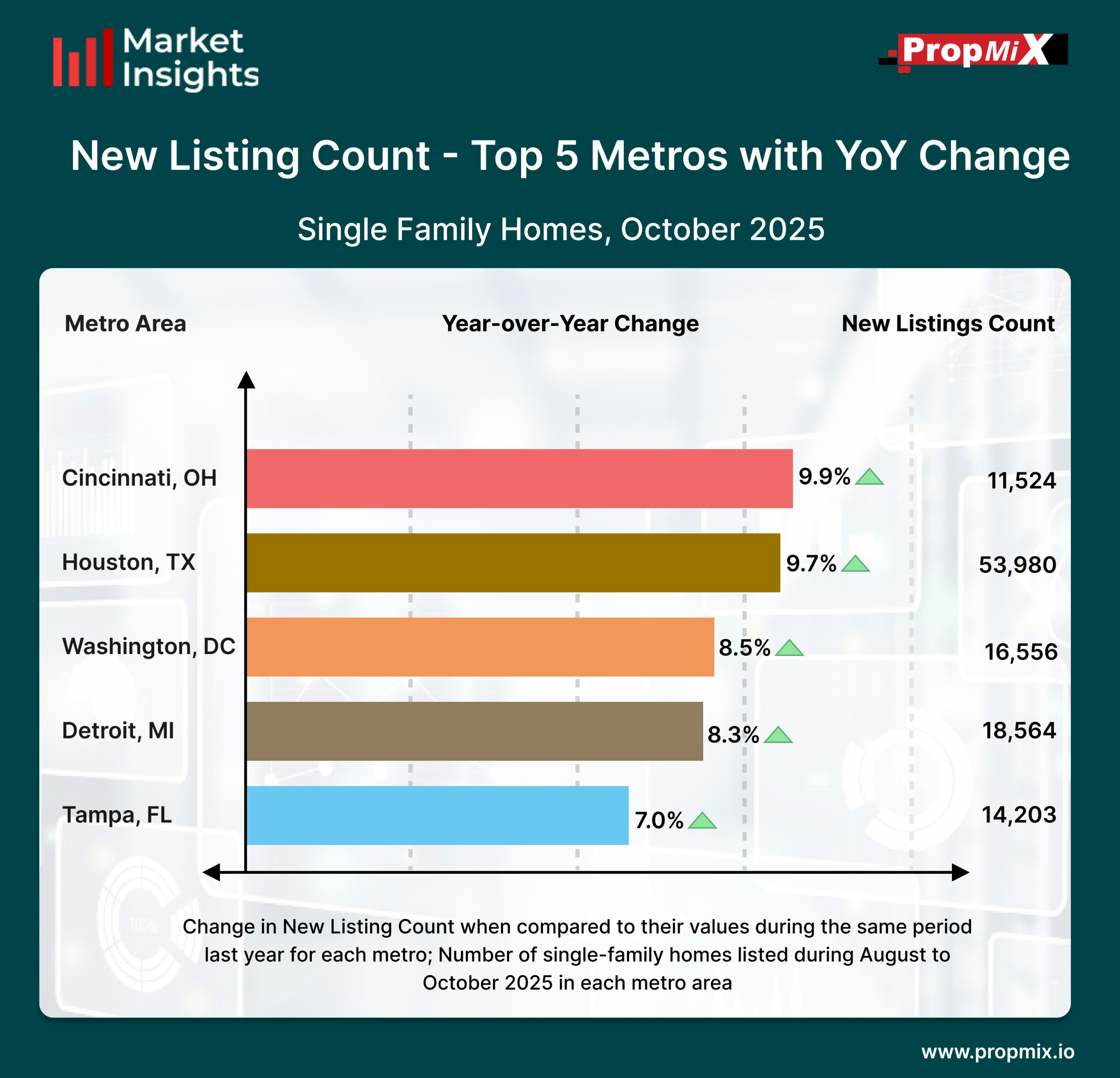 For a detailed view of all 30 metro areas that we track and more insights, visit our Interactive Market Insights page. Learn more about the metrics in PropMix Market Insights.
