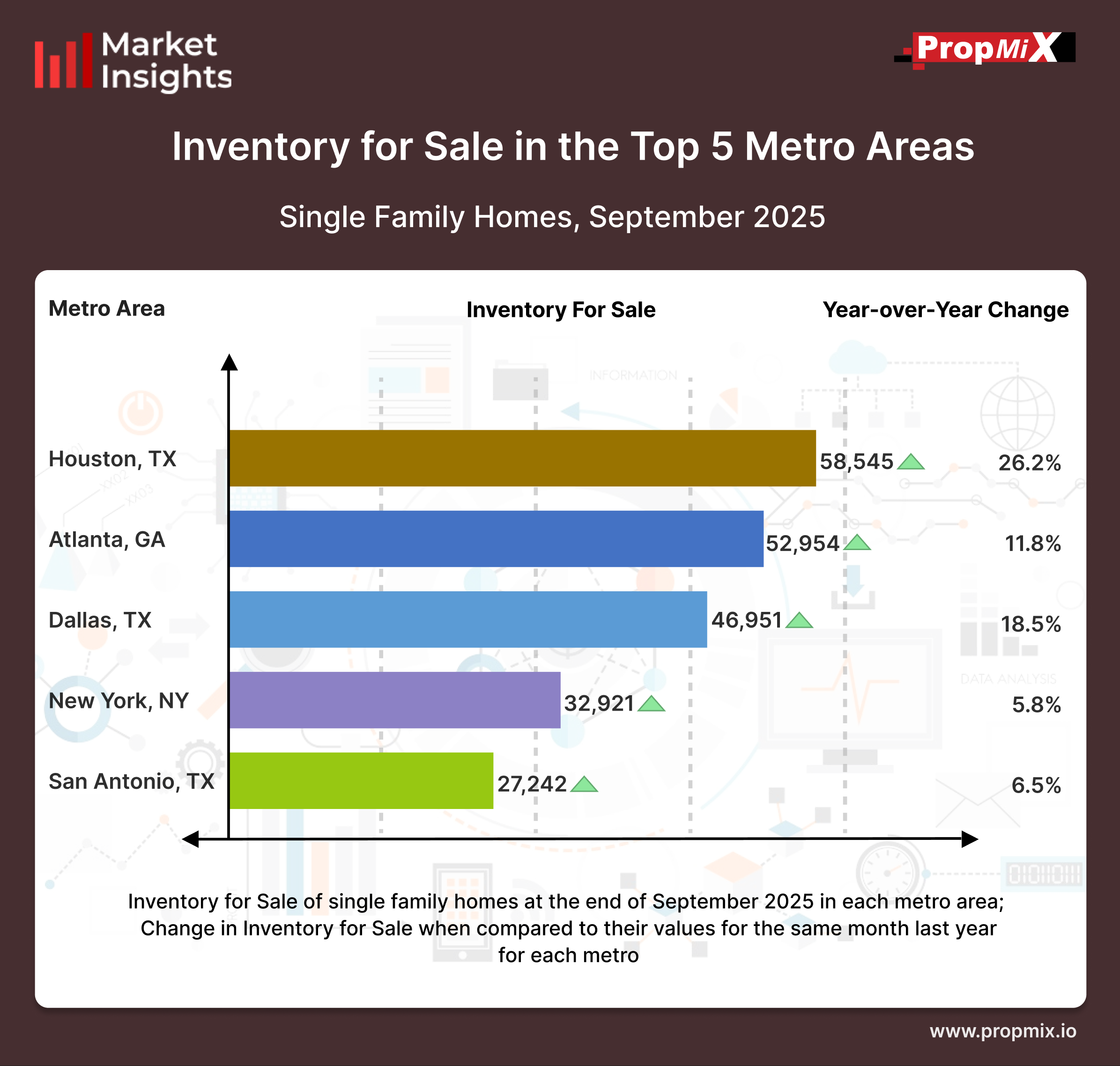 For a detailed view of all 30 metro areas that we track and more insights, visit our Interactive Market Insights page. Learn more about the metrics in PropMix Market Insights.