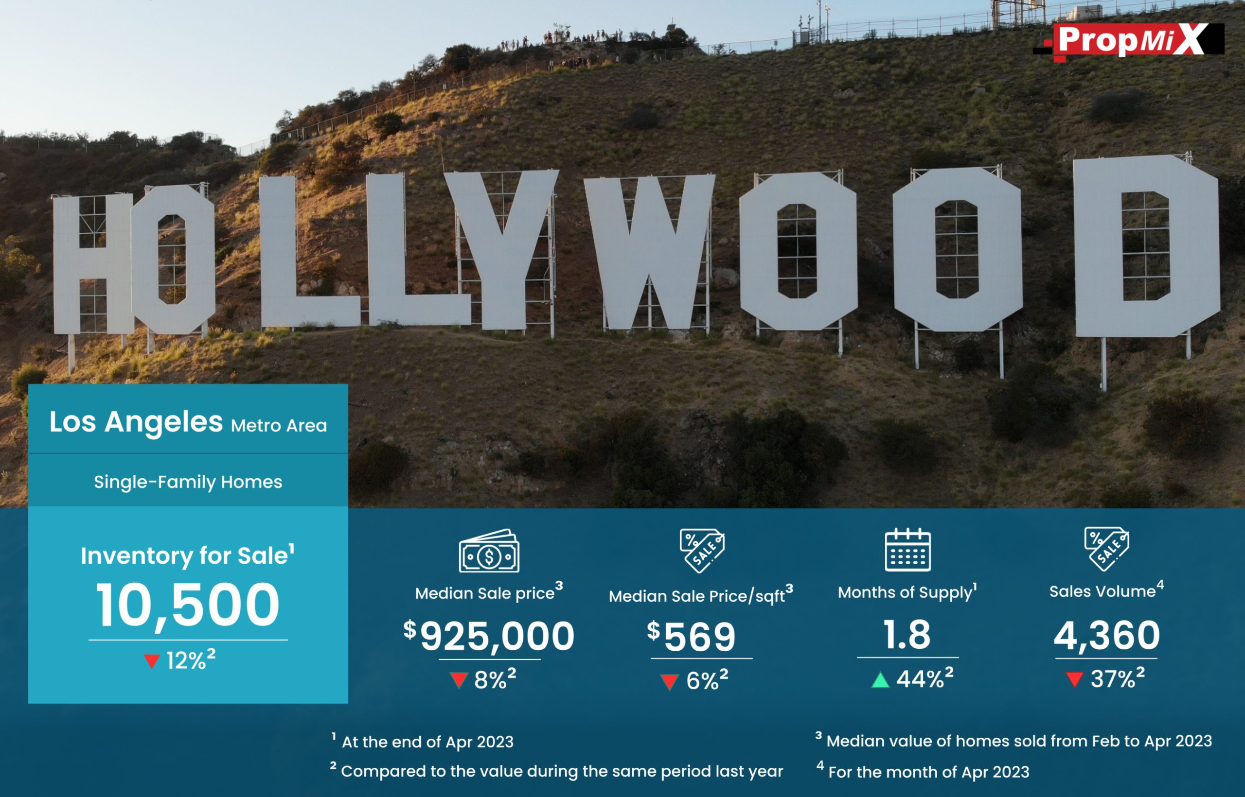 By the end of April 2023, the inventory of single-family homes listed for sale in the Los Angeles metro region experienced a 12% decline compared to the same period in the prior year. This resulted in a total inventory of 10,500 units available for purchase.
