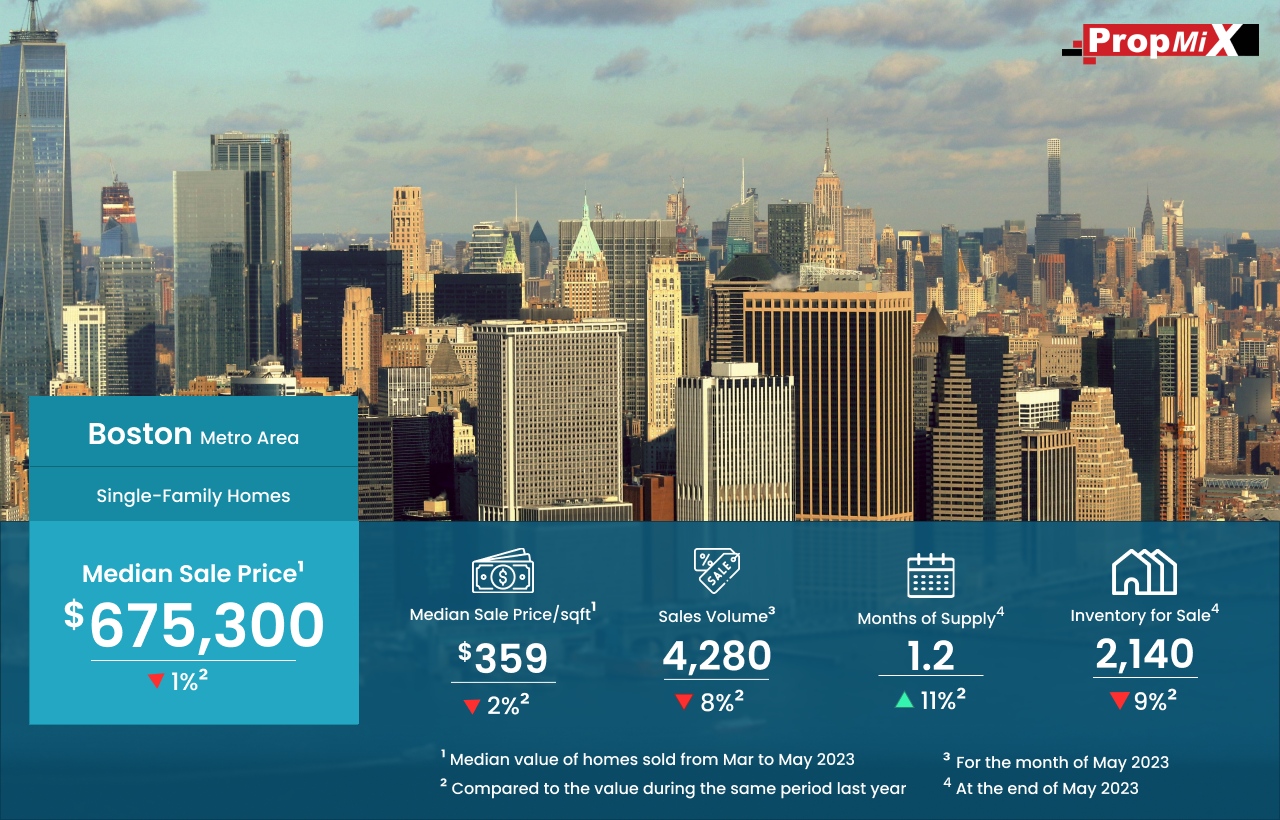 Between March and May 2023, the median sale price in the Boston metro area experienced a decline, settling at $675,300. This marked a 1% decrease in the median sale price compared to the same period last year.