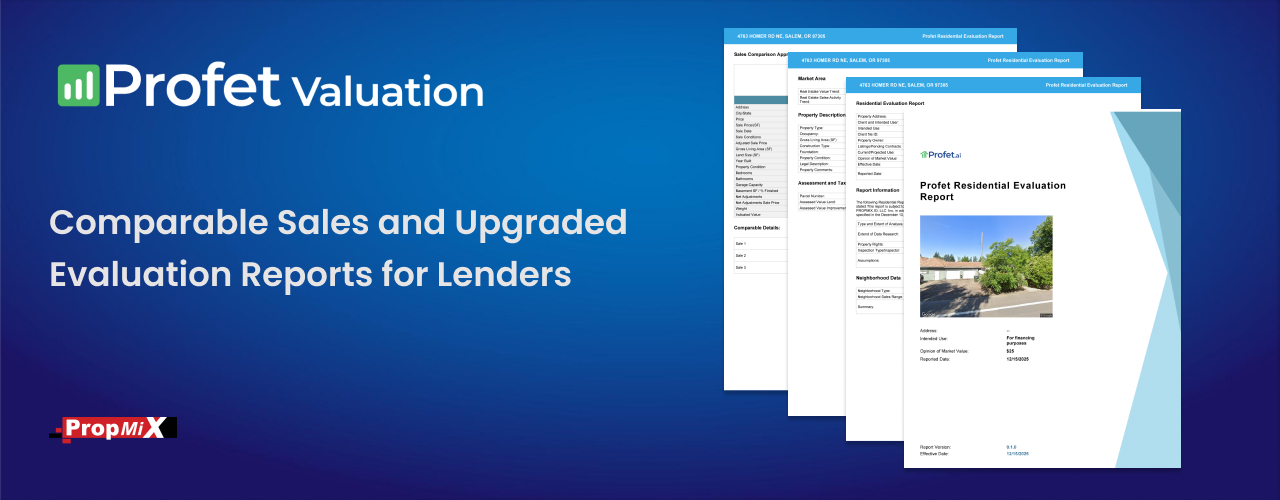 Profet Valuation has introduced Comparable Sales Reports along with an upgraded Evaluation Reports as new additions to the platform, expanding the set of lender-focused valuation products available within Profet.