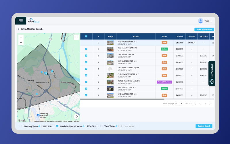 In the current release, Agentic AI powers Home Value Reports by enabling intelligent, guided exploration of property values through interactive maps, comparable selection, and adjustment-driven analysis. A more advanced conversational experience is coming soon, which will function as a fully automated agent capable of handling end-to-end property research tasks.